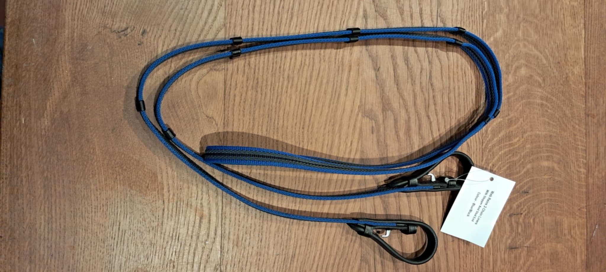 Hestagallery blå supergrip tøjle med stoppere, trenselukning