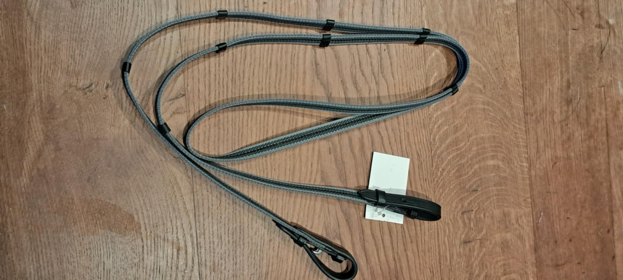 Hestagallery grå supergrip tøjle med stoppere, trenselukning