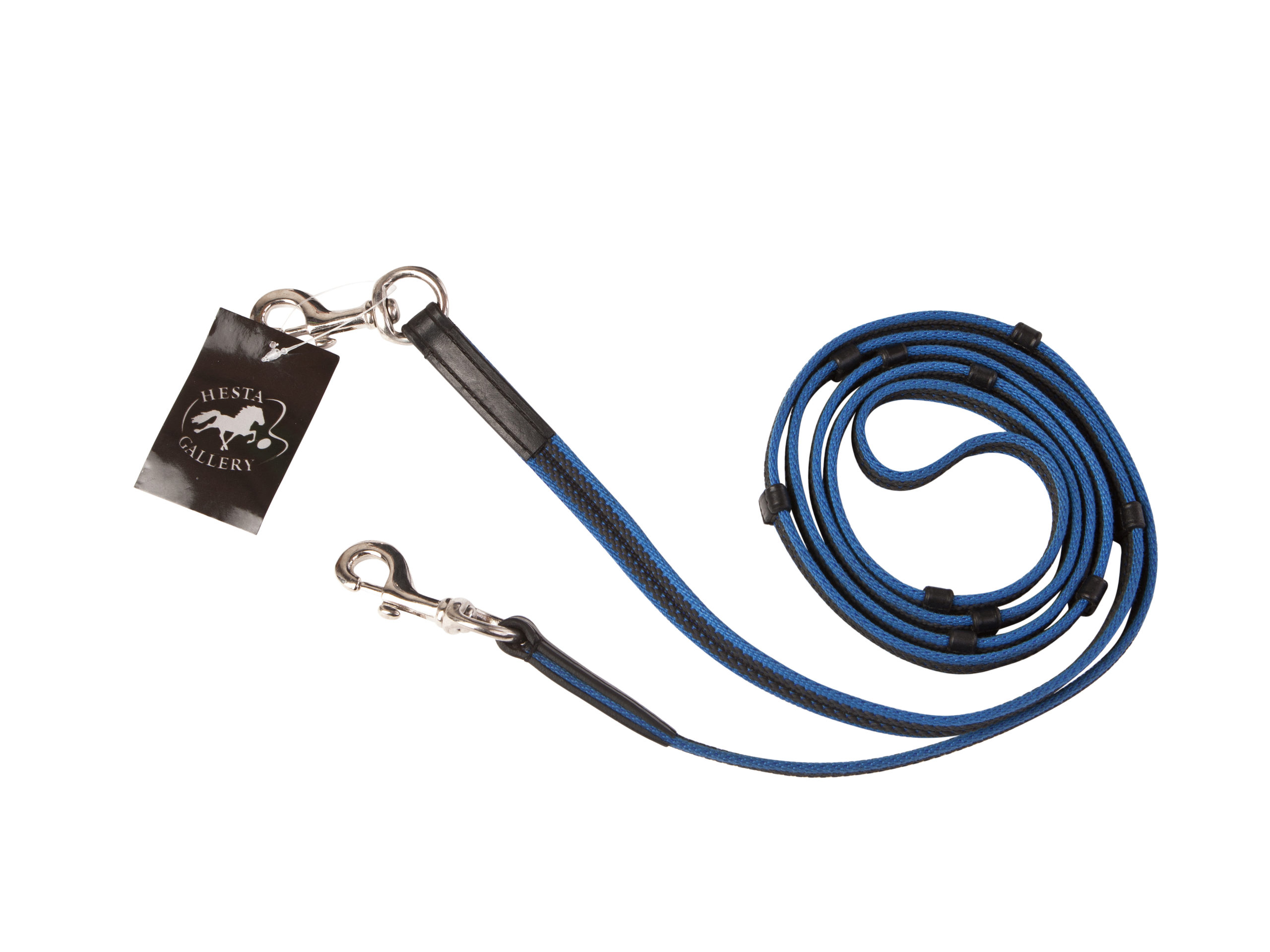Hjem » Produkter » Hestagallery blå supergrip tøjle med stoppere