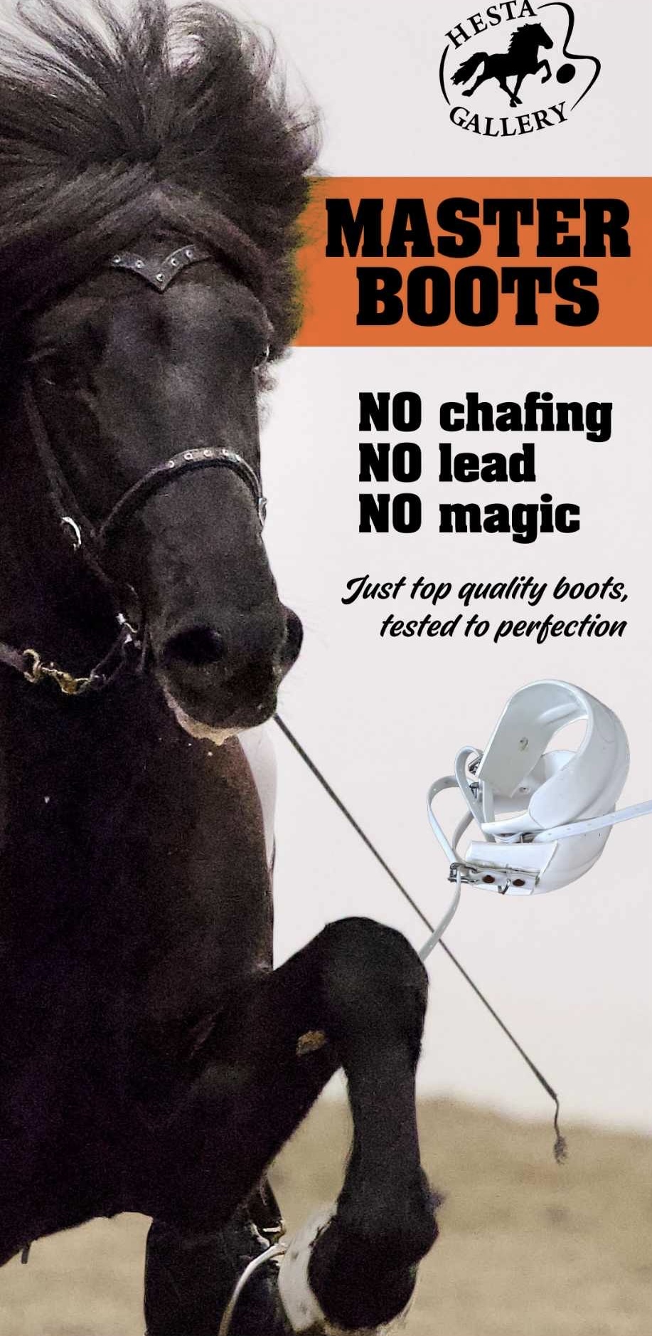 Hestagallery Master Boots til islændere til både stævner og træning. Master Boots fås i 10 forskellige vægte, og i modsætning til andre vægtboots er de produceret uden indsatte blystykker. Dermed er vægten mere ligeligt fordelt.