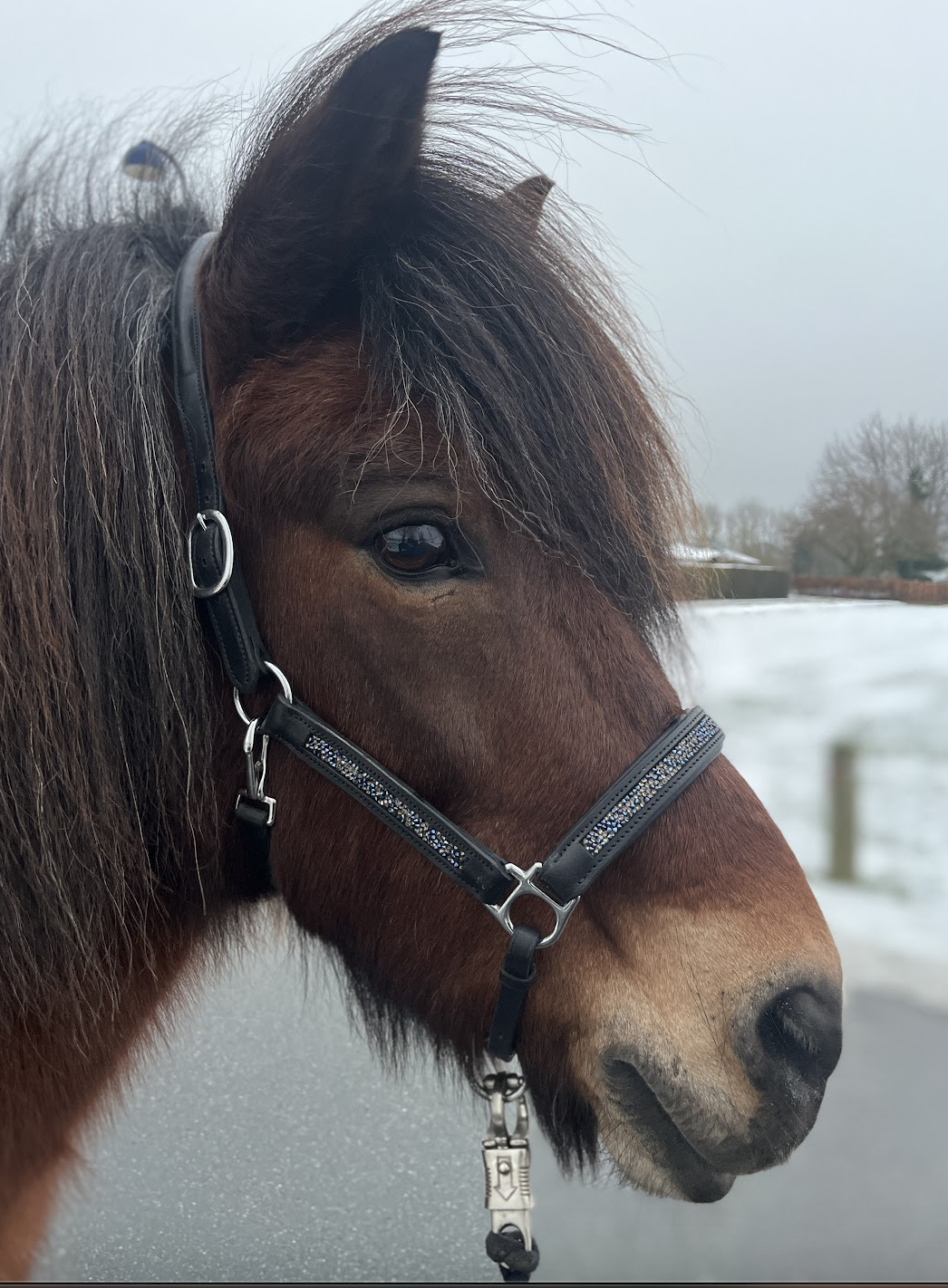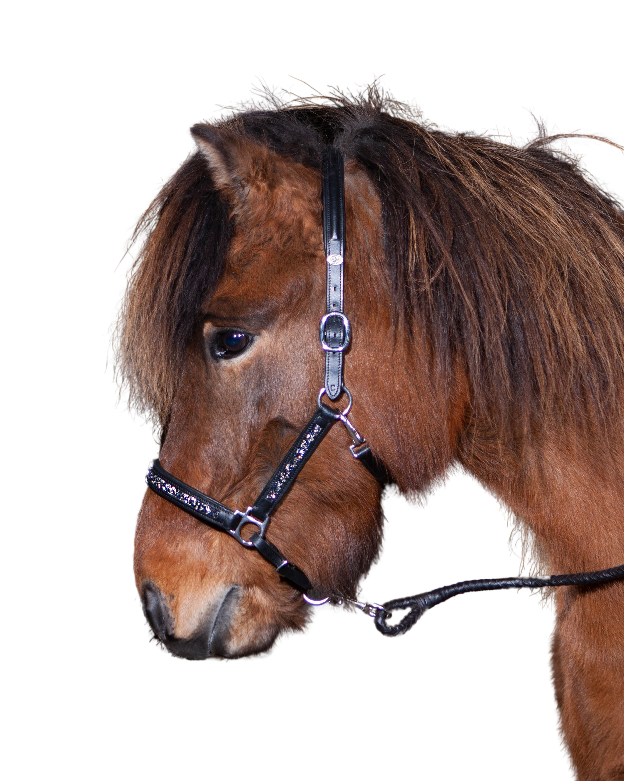 Nakkestykket er foret med blødt læder og har spænder i begge sider. Kæbestykket har clips i begge sider.