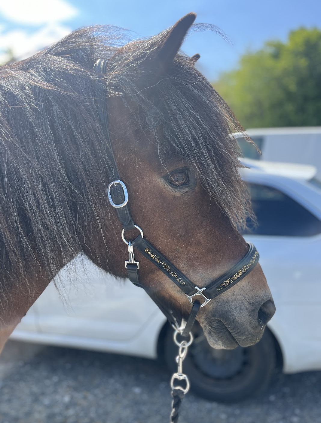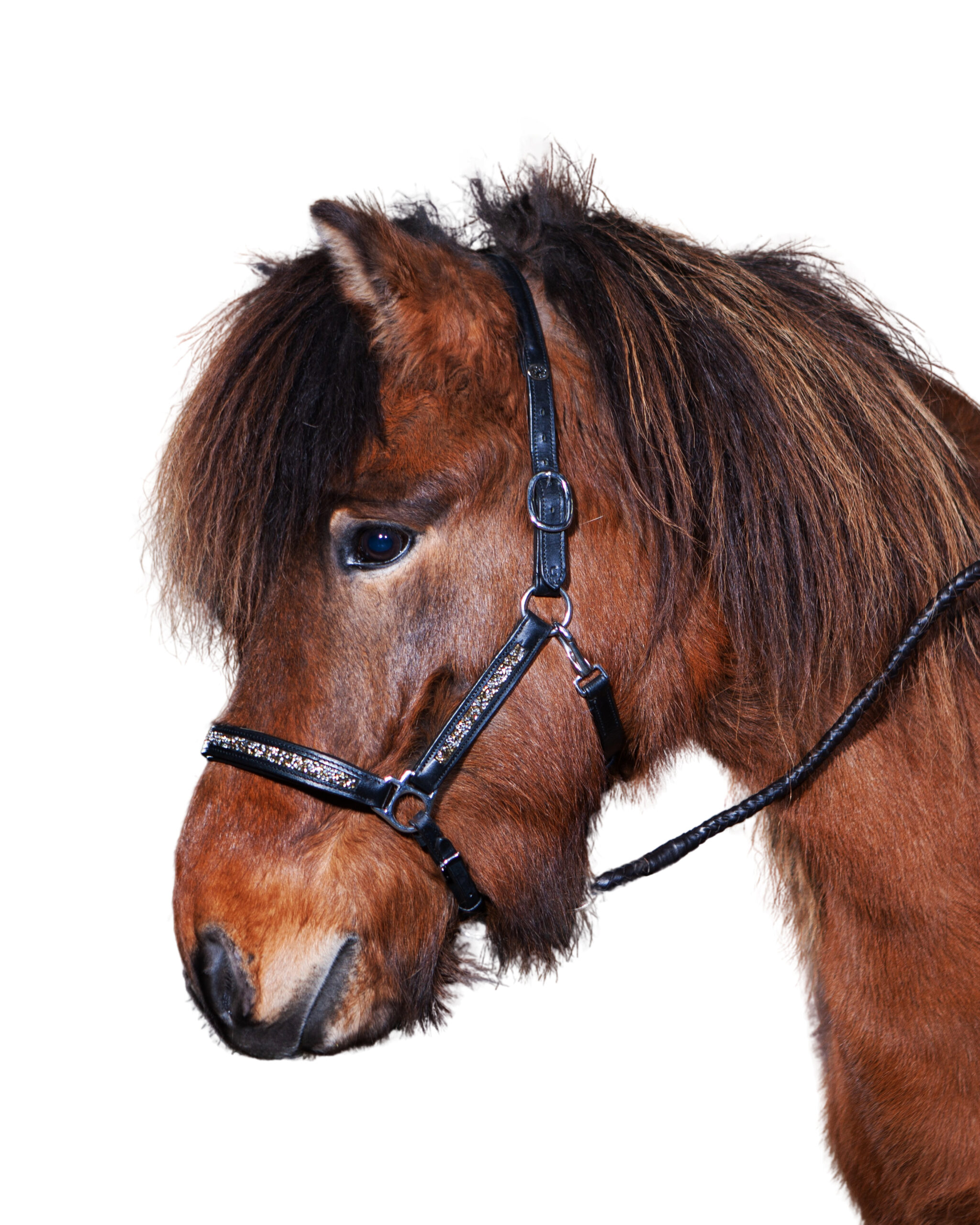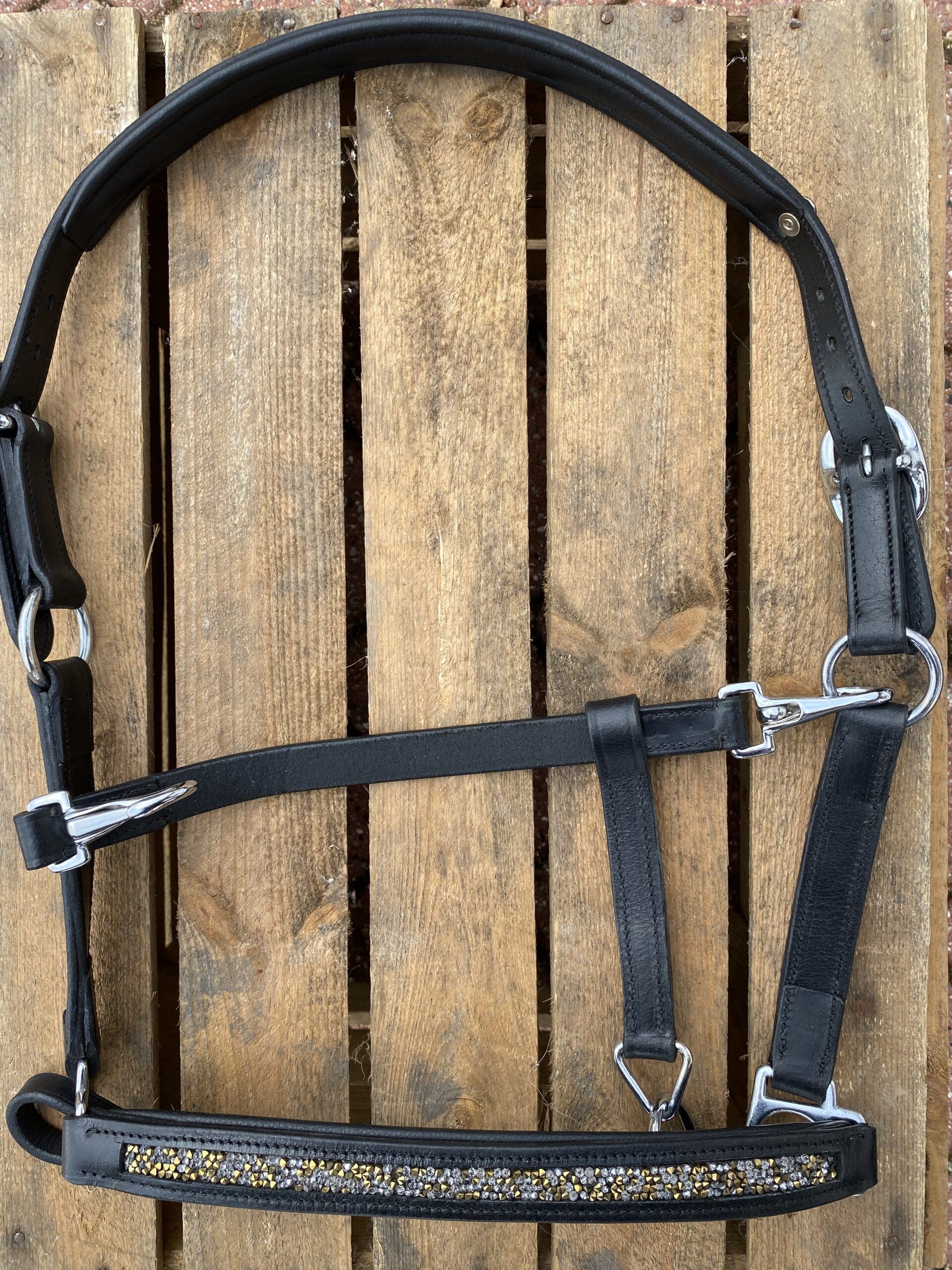 Hestagallery Rockstone Lædergrime med små guld- og sølvfarvede sten. Lækker lædergrime til islænderen.
