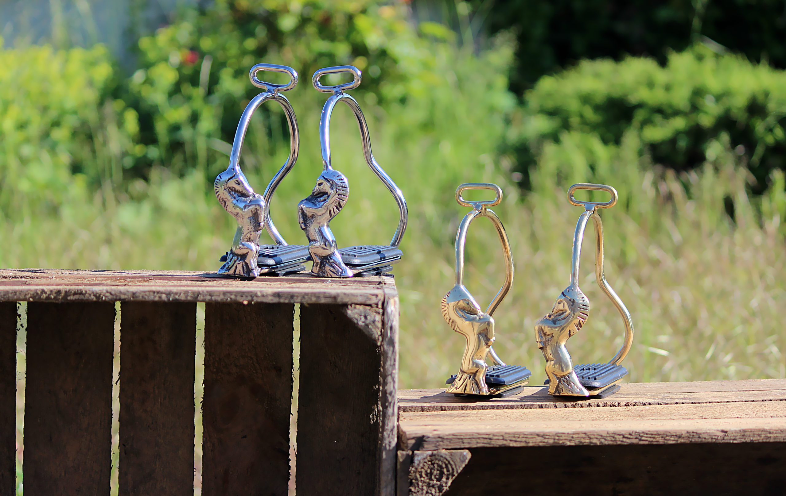 Hjem » Produkter » Hestagallery stigbøjler med hest, stål