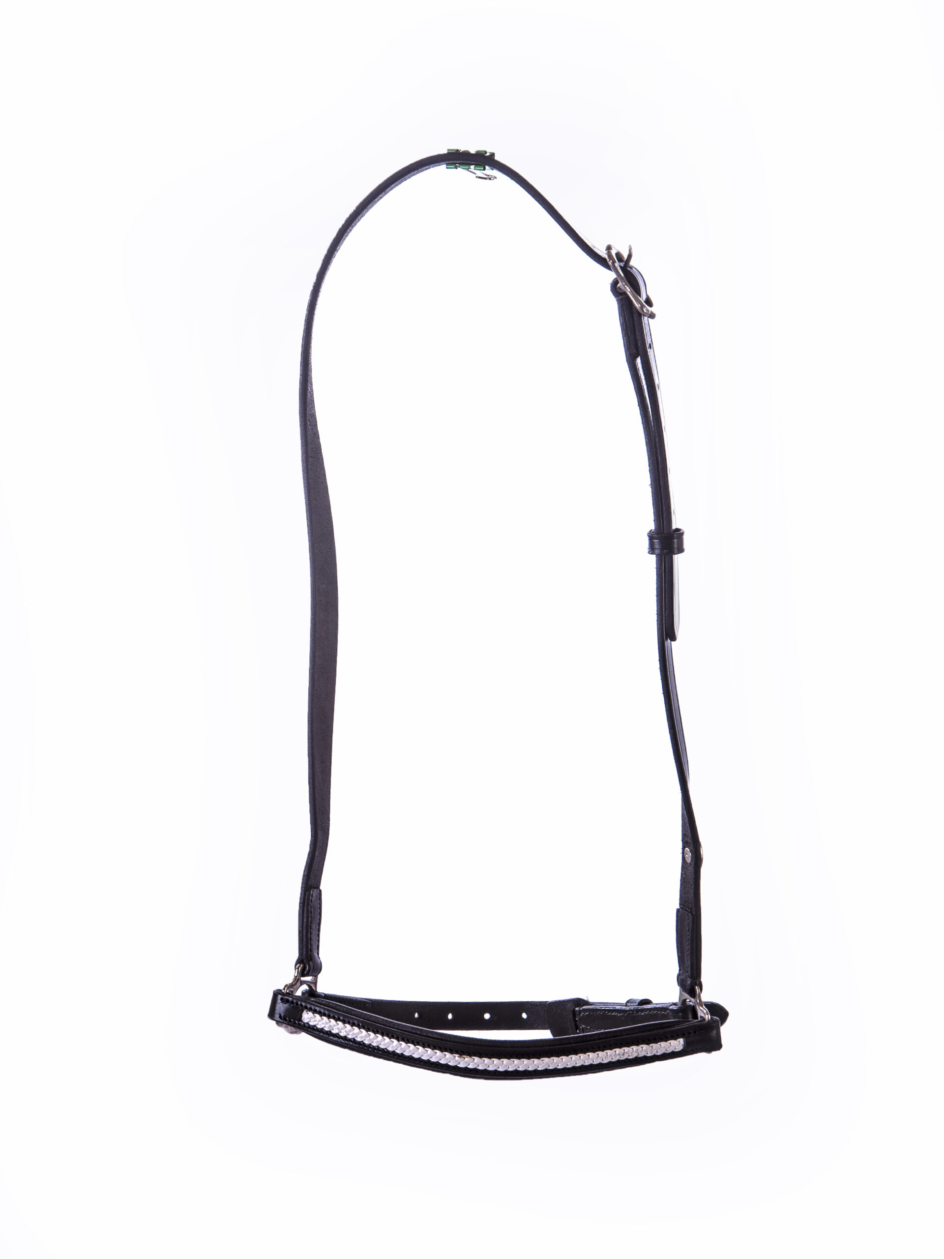 En opdatering af vores populære Woven serie, hvor næsestykket nu er polstret, så det er skånsomt for hesten, og flet er udført i læder.