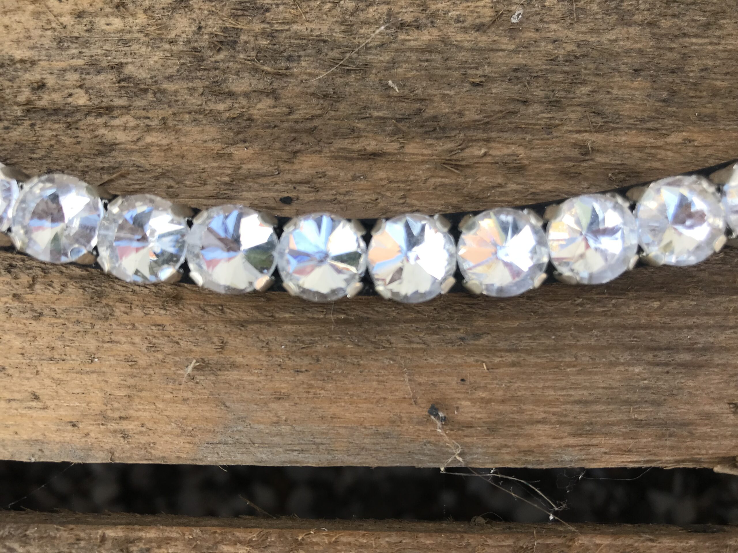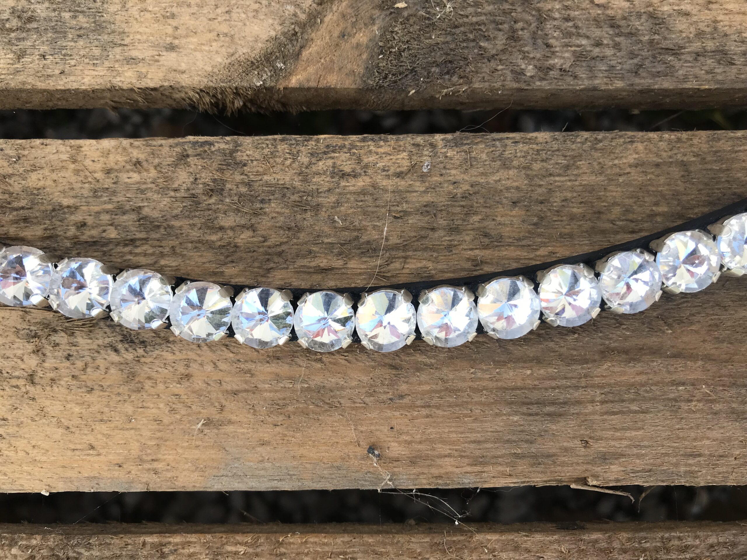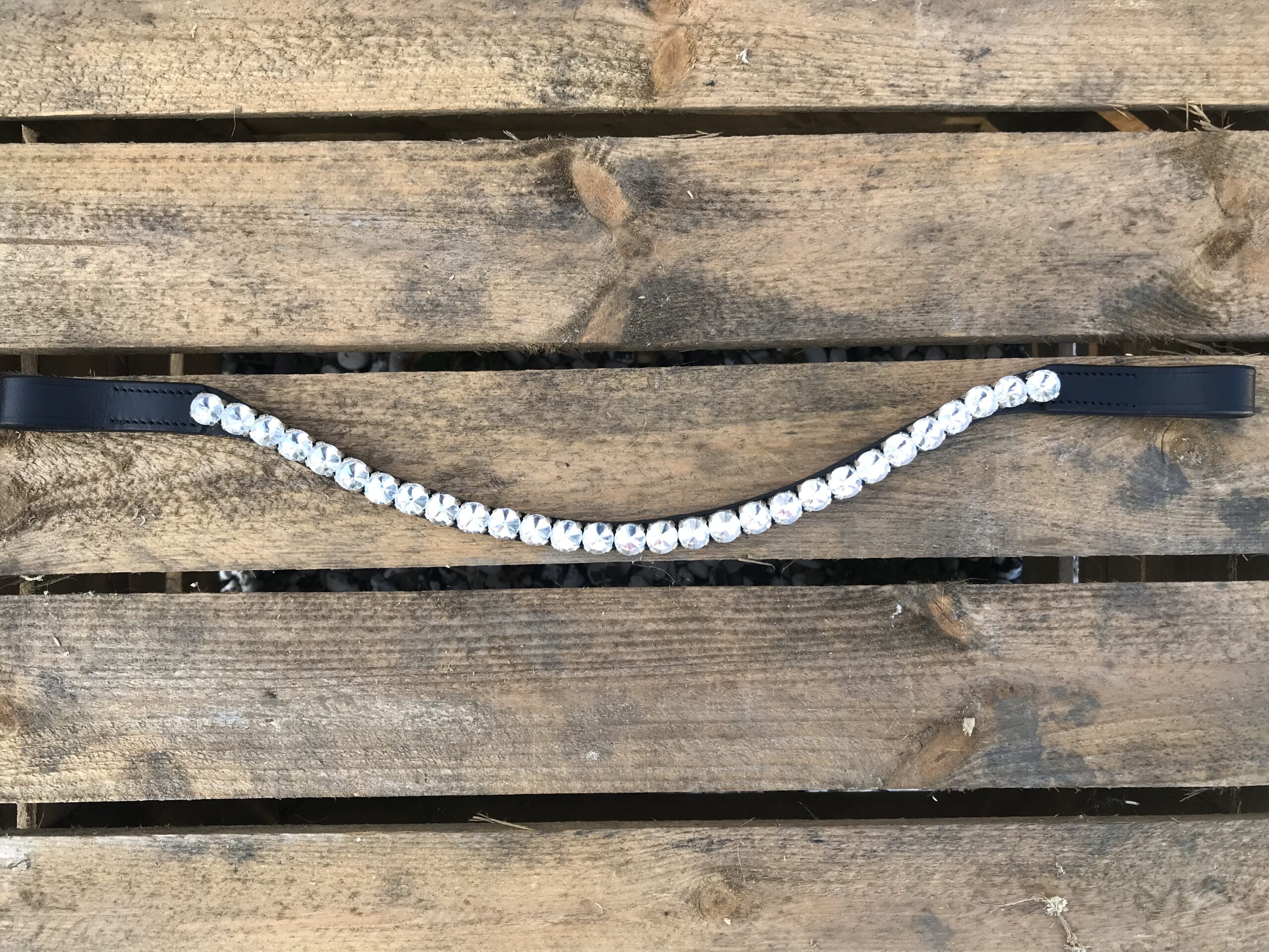 Lækkert blødt pandebånd i højkvalitetslæder. Dette pandebånd er dekoreret med store hvide sten.